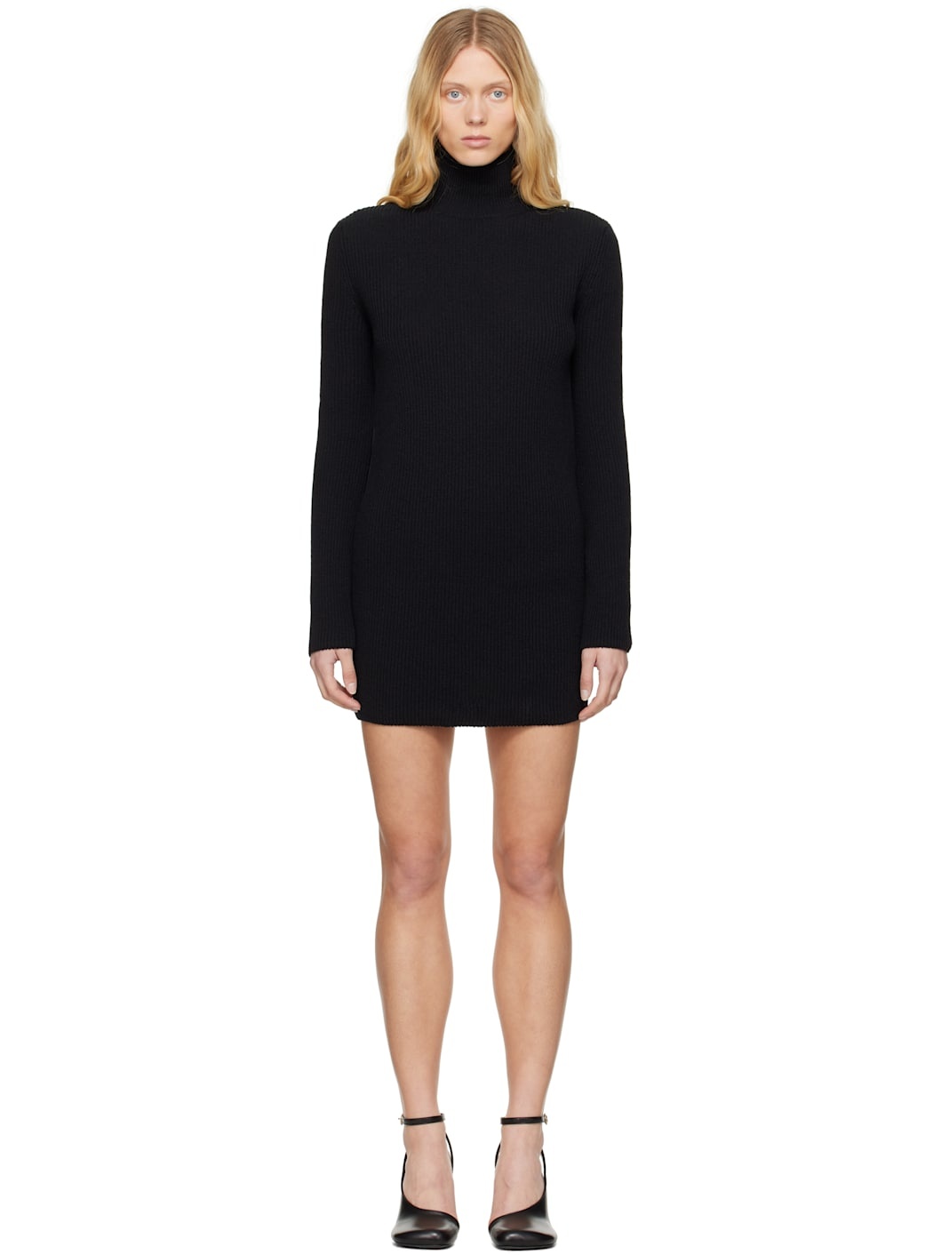 Rib-knit cotton-blend minidress. · Cutout at turtleneck and back collar · Cutouts at elbows for alternate styling · White stitching at back collar Supplier color: Black 75% cotton, 20% polyester, 5% other fibres. Made in Italy 251188F052025