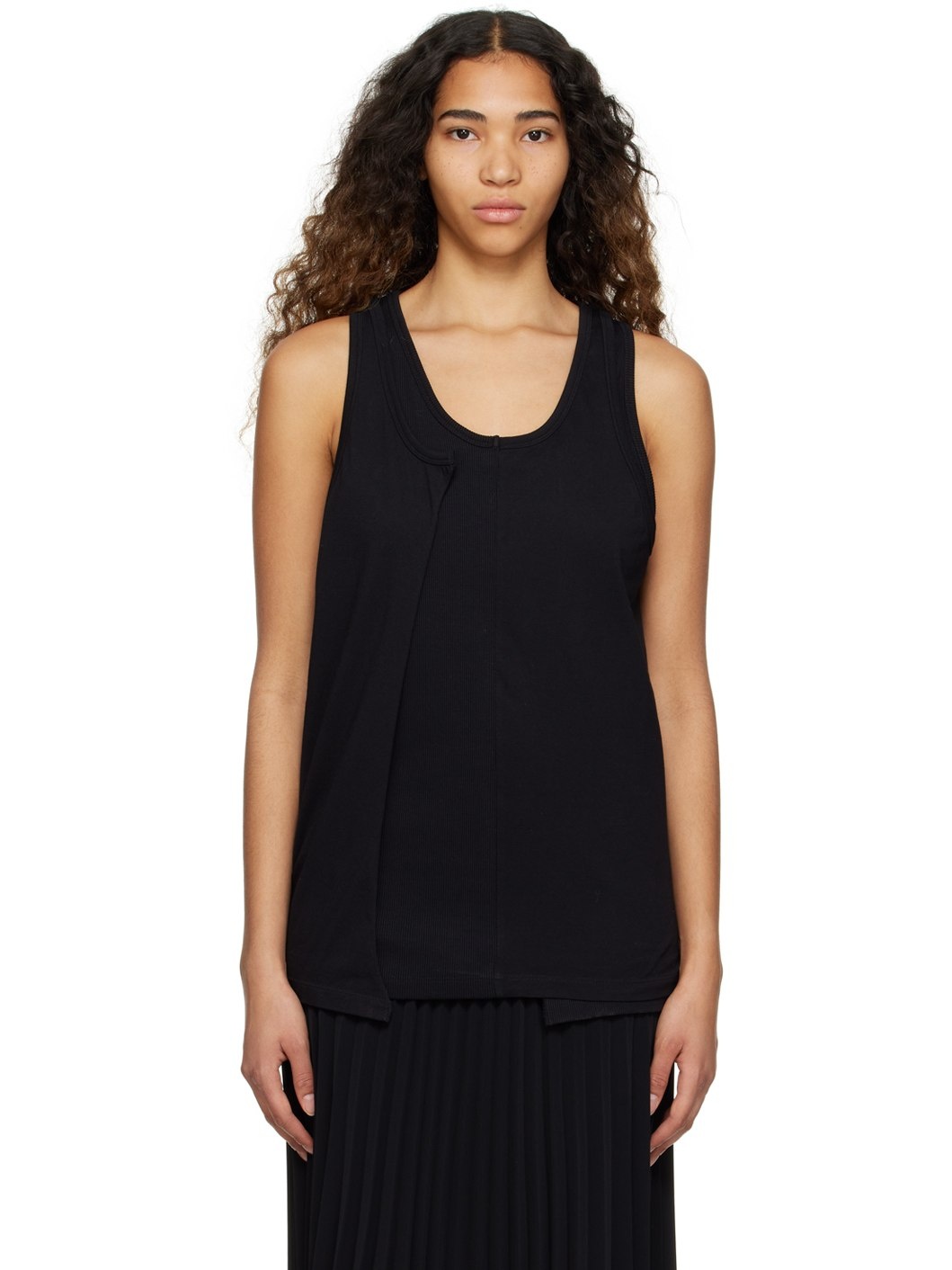 Rib knit stretch cotton and cotton jersey tank top. · Wrapped construction · Scoop neck · White stitching at back Supplier color: Black Body 1: 98% cotton, 2% elastane. Body 2: 100% cotton. Made in Italy 231188F111000