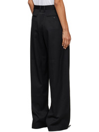 Stretch virgin wool-blend twill trousers. · Wide-leg · Belt loops · Four-pocket styling · Creased legs · Zip closure at outseam · White stitching at back Supplier color: Black Body: 54% polyester, 44% virgin wool, 2% elastane. Trim: 100% viscose. Made in Italy 252188F087008