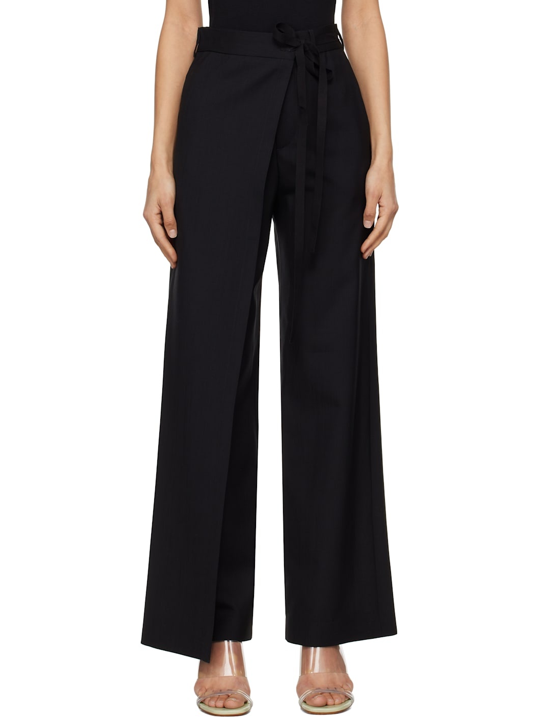 Black Tailoring Wool Canvas Tie Trousers