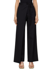 Virgin wool canvas trousers. · Wrap construction · Belt loops · Self-tie fastening at waistband · Four-pocket styling · Zip-fly · Vented outseam · White stitching at back waistband Supplier color: Black Body: 100% virgin wool. Lining: 100% viscose. Made in Italy 251188F087008