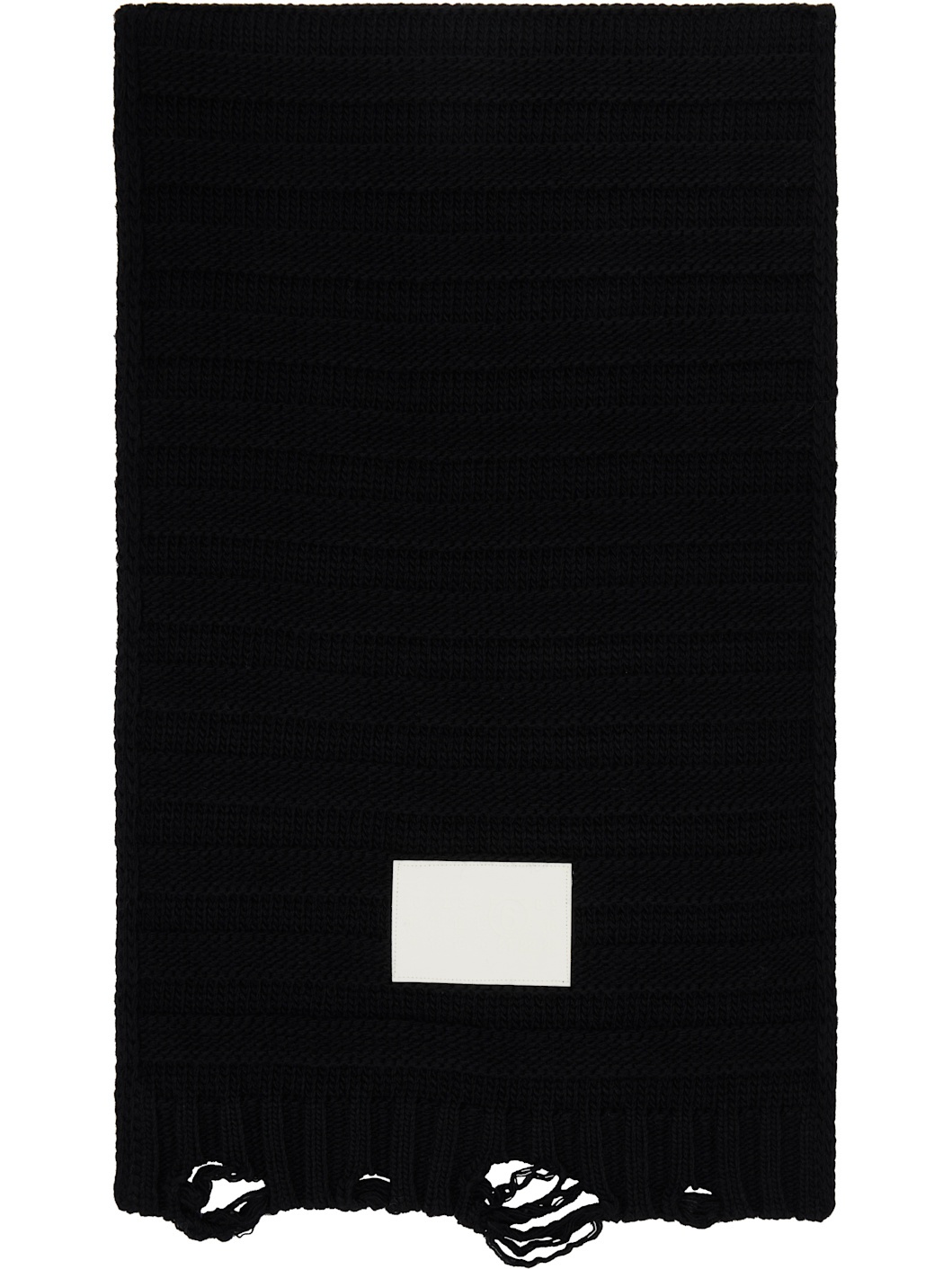 Rectangular rib-knit virgin wool-blend scarf. · Logo patch at face · Raw edge at ends · L66" x W16" Supplier color: Black 50% virgin wool, 50% acrylic. Made in Romania 252188M150000