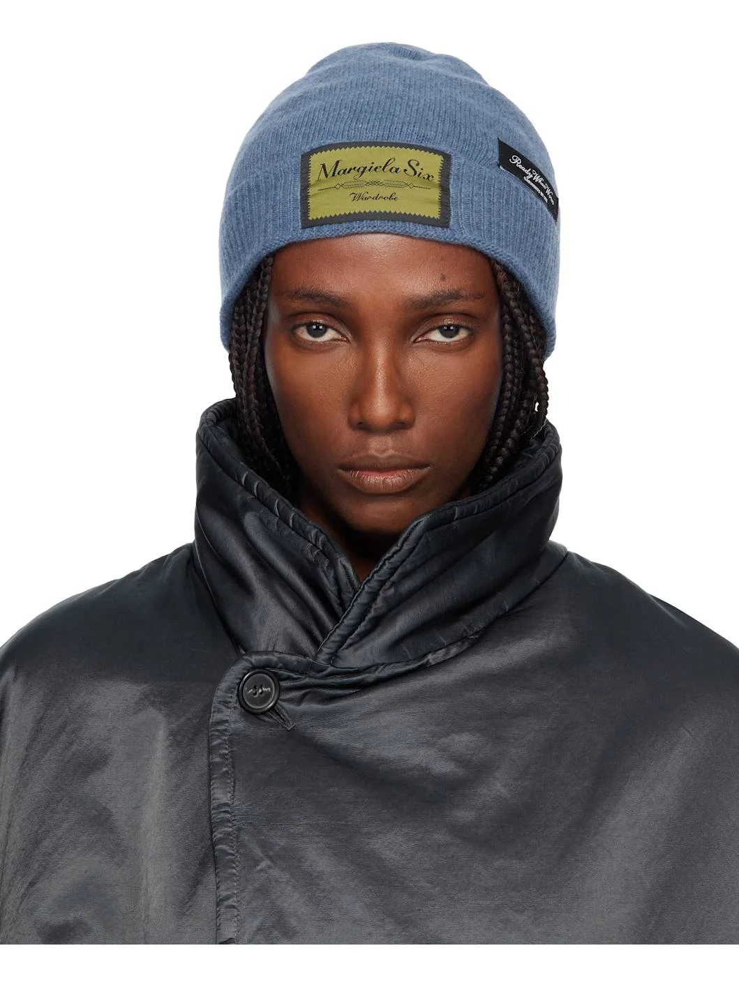 7-gauge knit wool-blend beanie. · White stitching at crown and back face · Logo patch at face and side · Rib-knit rolled brim Supplier color: Grey blue 80% wool, 20% nylon. Made in Italy 261188F014004