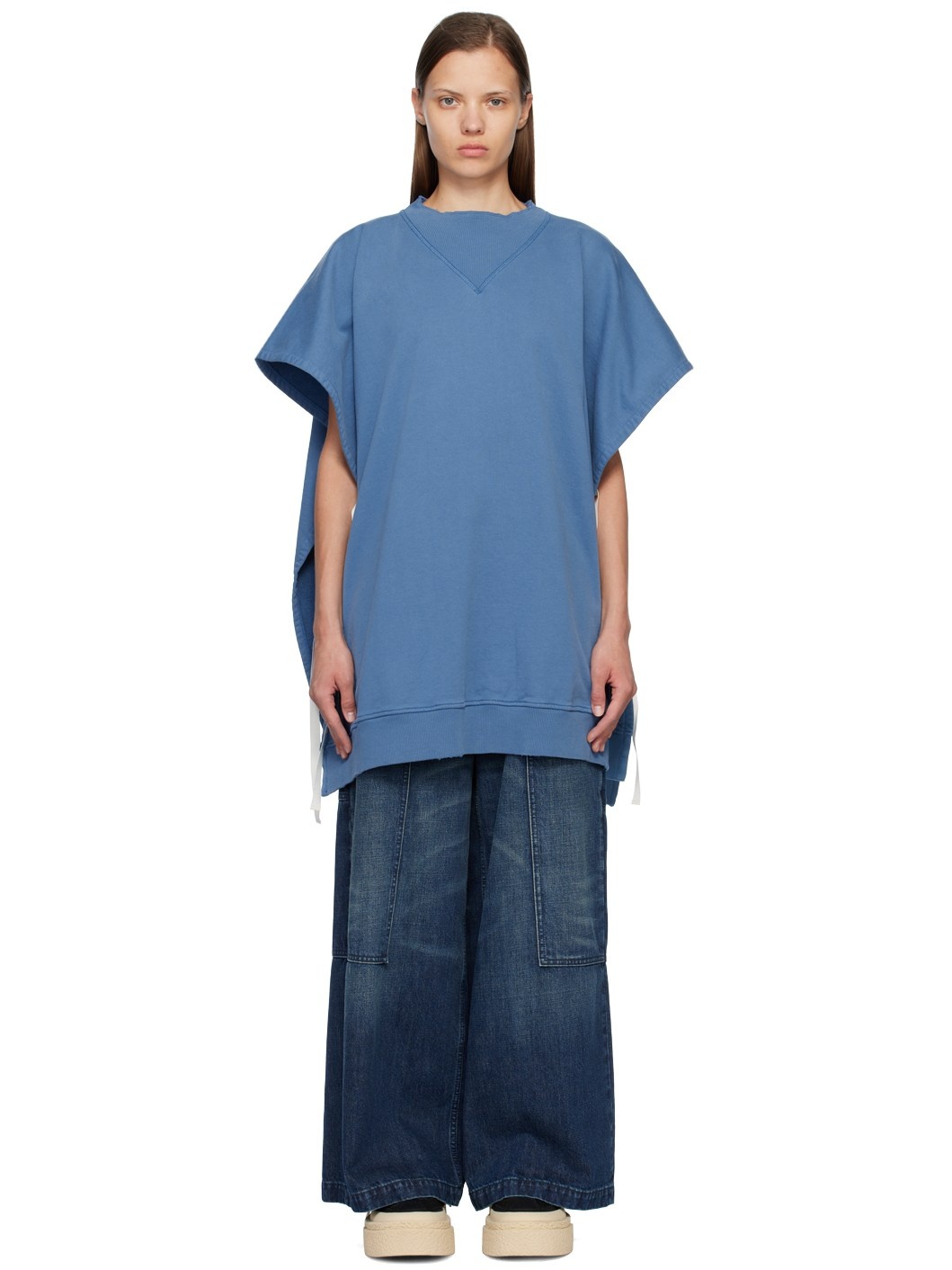 French terry sweatshirt. · Rib knit crewneck and hem · Self-tie fastening at open side seams · White stitching at back yoke · Logo bonded at back Supplier color: Office blue Body: 100% cotton. Trim: 98% cotton, 2% elastane. Made in Italy 231188F098017