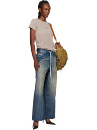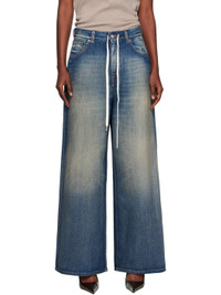Non-stretch denim jeans. · Fading and whiskering throughout · Wide-leg · Drawstring and belt loops at waistband · Five-pocket styling · Zip fly · Logo patch at back waistband · White stitching at back · Contrast stitching in tan Supplier color: Blue Body: 100% cotton. Trim: 65% polyester, 35% cotton. Made in Italy 252188F069010