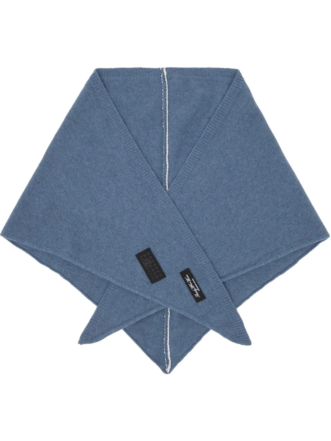 Triangular knit wool-blend scarf. · 7-gauge knit · Logo patches and white stitching at face · Rib-knit trim at edge · L56" x W23" Supplier color: Grey blue 80% wool, 20% polyamide. Made in Italy 261188F028001