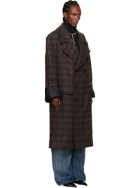 Wool-blend melton coat. · Check pattern throughout · Notched lapel · Double-breasted button closure · Flap pockets at front · Rolled cuffs · Button tab at back · Central vent at back hem · Welt pocket at interior · Full satin lining Supplier color: Brown/Black Body: 40% wool, 30% lyocell, 30% polyamide. Trim: 100% cotton. Lining: 100% viscose. Made in Italy 252188F059007