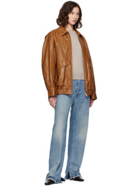 Buffed faux-leather bomber jacket. · Spread collar · Zip closure · Flap and patch pockets at front · Elasticized hem · Concealed button fastening at cuffs · White stitching at back collar Supplier color: Caramel Body 1: 100% viscose. Body 2: 100% polyurethane. Fill: 100% polyester. Lining: 100% viscose. Made in Italy 252188F058001