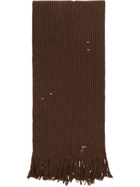 Rectangular 5-gauge knit virgin wool-blend scarf. · Distressing throughout · Logo patch at face · Fringed detailing at ends · L92" x W11" Supplier color: Brown 80% wool, 20% polyamide. Made in Italy 252188F028002