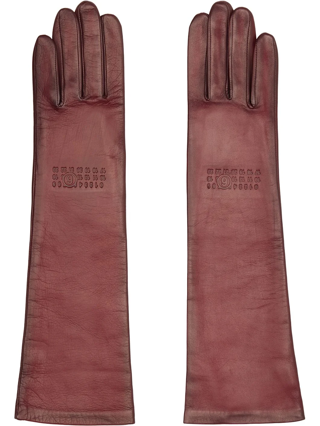 Pair of grained lambskin gloves. · Logo embossed at top · Silk jersey lining Part of the Agnelle x MM6 Maison Margiela collaboration. Supplier color: Red Body: 100% lambskin. Lining: 100% silk. Made in Philippines 252188F012005