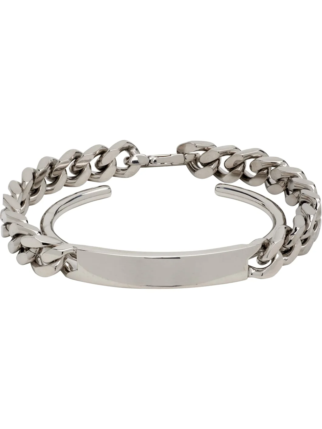 Tiered open cuff and curb chain bracelet in polished silver-tone brass. · Logo engraved at inner cuff · Lobster-clasp fastening Supplier color: Polished palladio Brass. Made in Italy 252188F020002