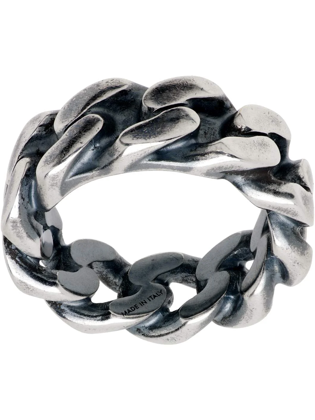 Fixed curb chain ring in antiqued silver-tone brass. Supplier color: Brunito Brass. Made in Italy 261188M147009