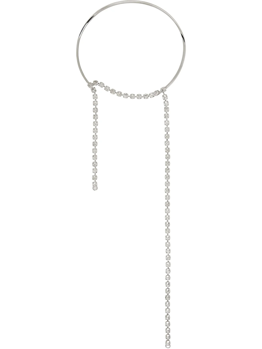 Cuff necklace in silver-tone brass. · Cup chain detailing with crystals at drop · Hook-eye fastening Supplier color: Polished palladio Brass, crystal. Made in Italy 261188F023006