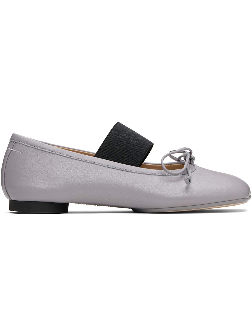 Buffed nappa leather ballerina flats. · Modified square toe · Bow at vamp · Logo-printed elasticized strap · Signature white stitching at heel · Logo-embossed rubber cylindrical heel · Suede and buffed calfskin lining · Calfskin sole Supplier color: Silver Filigre Upper: leather. Sole: calfskin. Made in Italy 252188F118002