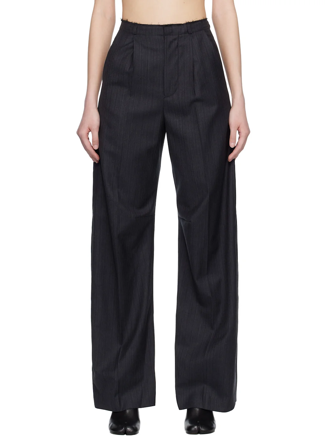 Gray Pinstripe Wool Wide-Leg Trousers