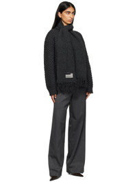 Waffle-knit virgin wool-blend sweater. · Distressing at rib-knit crewneck and cuffs · Integrated fringed scarf with logo patches · White stitching at back collar Supplier color: Dark grey melange 50% virgin wool, 50% acrylic. Made in Italy 252188F099001