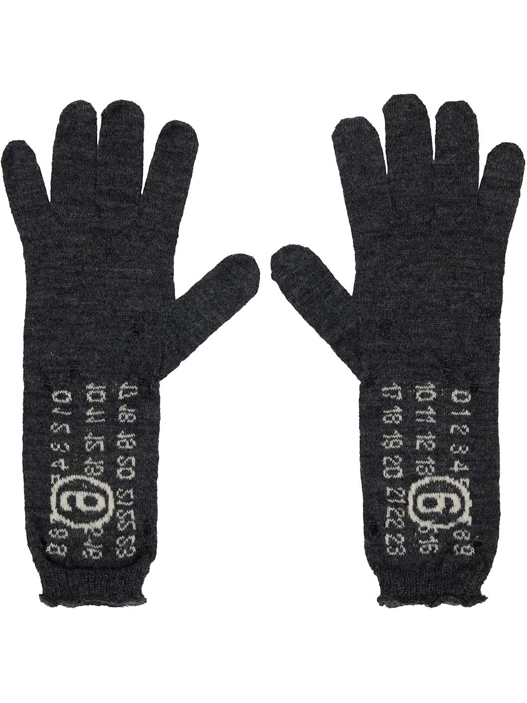 Pair of 12-gauge knit virgin wool gloves. · Jacquard logo at top · Raw edge at cuffs Supplier color: Dark grey 100% virgin wool. Made in Italy 252188F012001