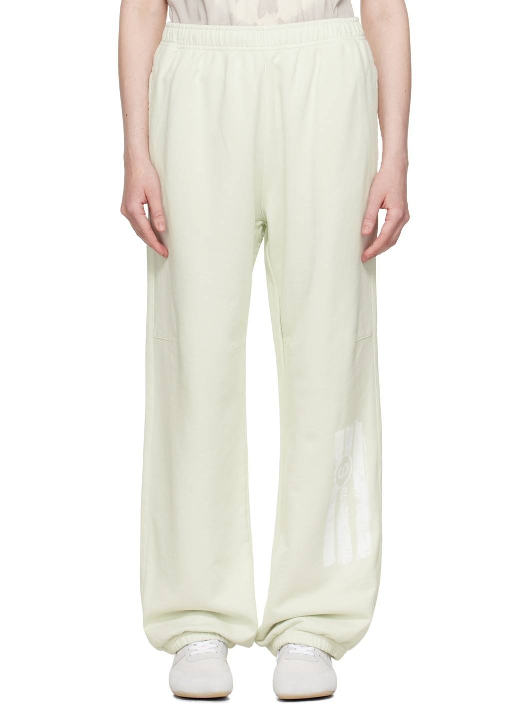 French terry lounge pants. · Concealed drawstring at elasticized waistband · Two-pocket styling · Logo printed at lower leg · Elasticized cuffs · White stitching at back Supplier color: Pistachio green 100% cotton. Made in Italy 251188F086015
