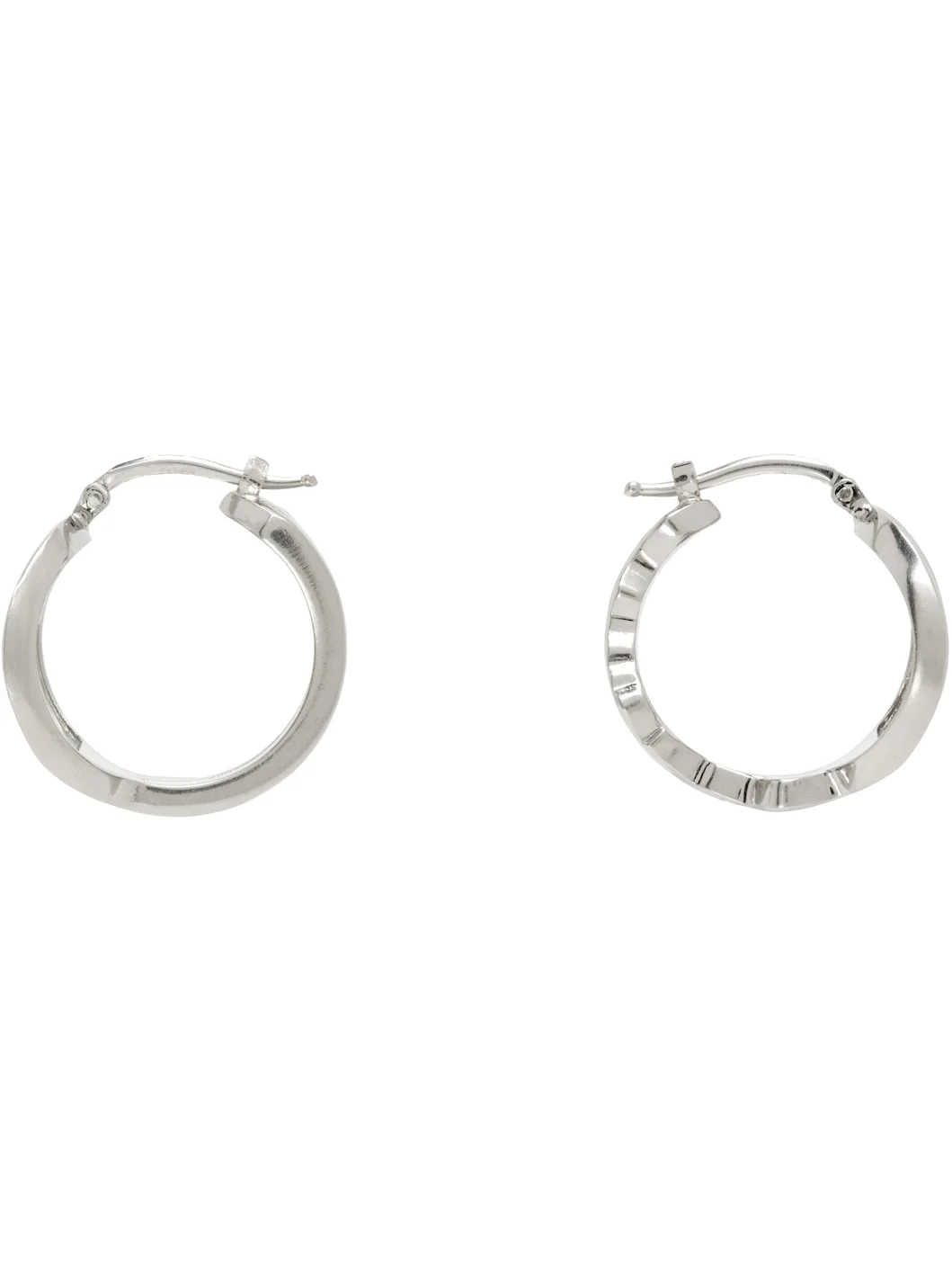 Pair of sculptural hoop earrings in silver-tone brass. · Logo engraved at hoop · Hinged-post fastening · D0.75" Supplier color: Glazed Palladium Brass. Made in Italy 261188M144009