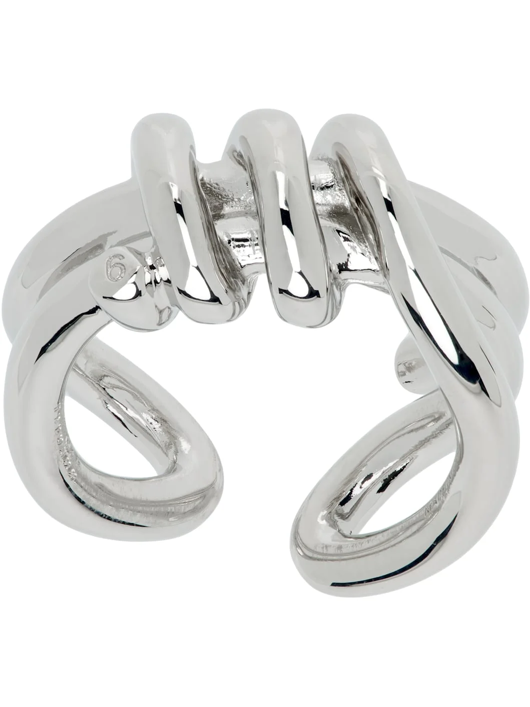 Sculptural cuff ring in silver-tone brass. · Logo etched at face · Hallmarking at inner band Supplier color: Polished palladio Brass. Made in Italy 261188M147004