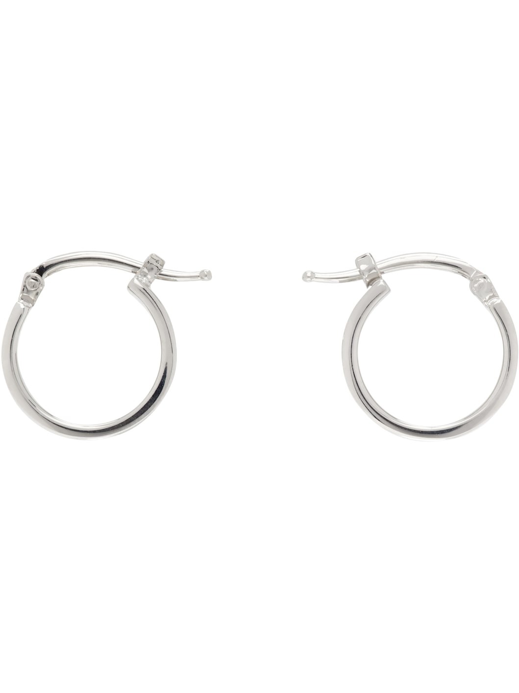 Pair of hoop earrings in sterling silver-plated brass. · Logo engraved at face · Hinged-post fastening · D0.5" Supplier color: Polished palladio 925 sterling silver-plated brass. Made in Italy 252188M144012