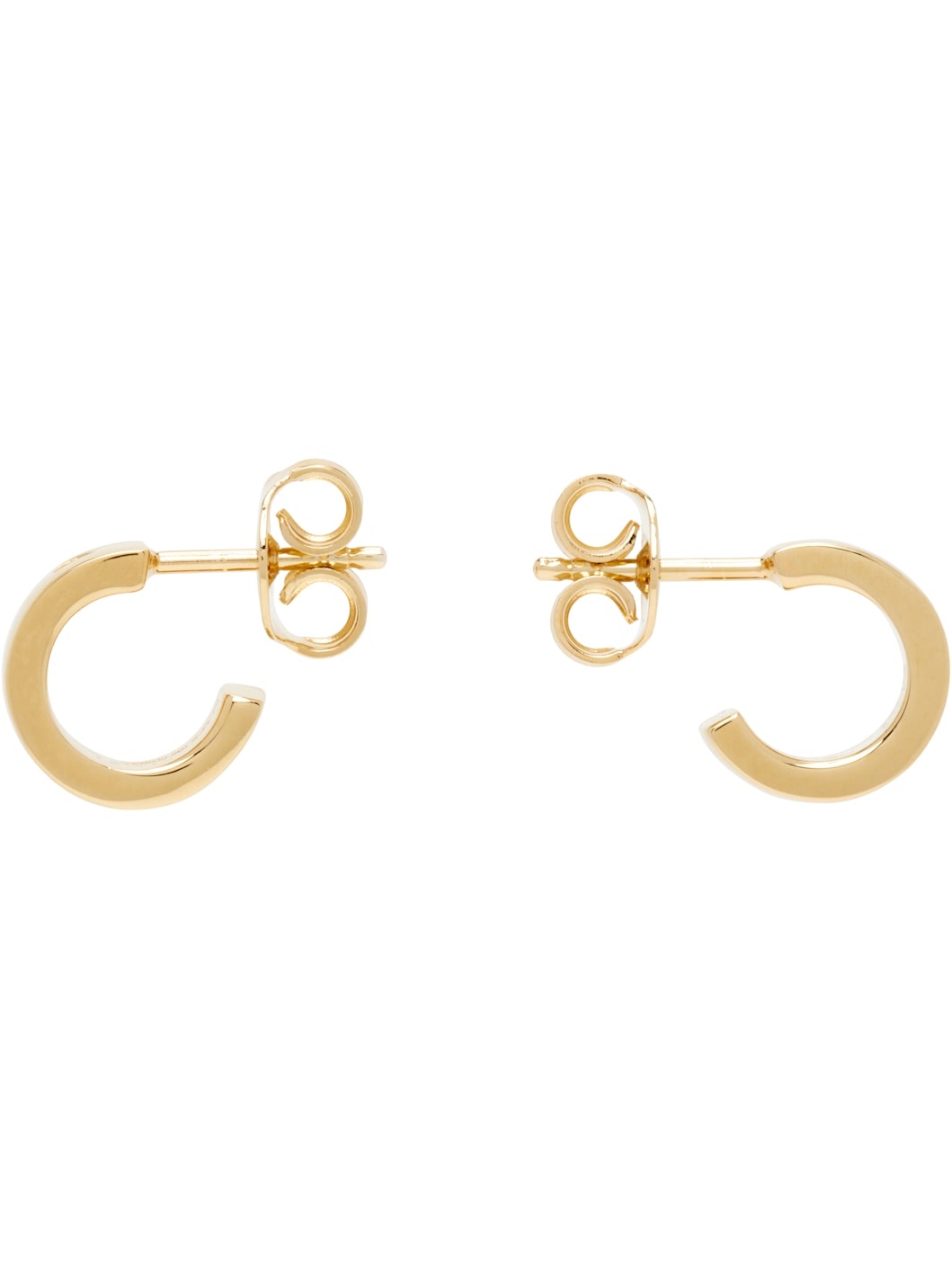 Pair of open hoop earrings in gold-tone brass. · Logo engraved at face · Post-stud fastening · D0.5" Supplier color: Gold Brass. Made in Italy 252188F022002