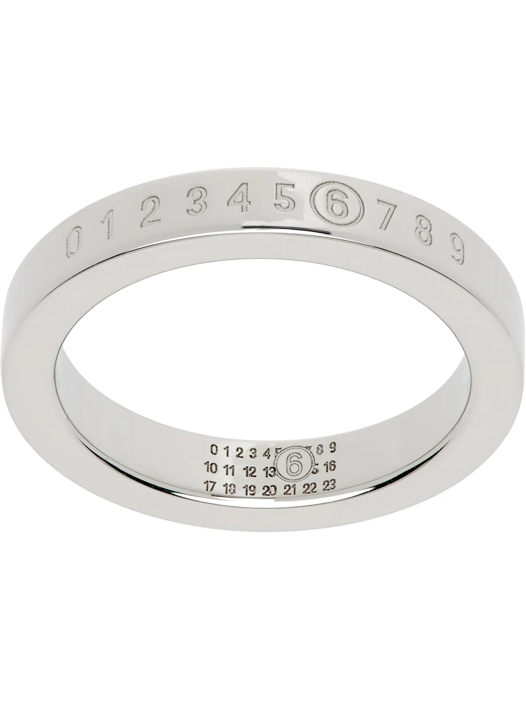 Band ring in silver-tone brass. Logo engraved at face. Supplier color: Polished palladio Brass. Made in Italy 261188M147007