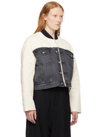 Off-White & Black Paneled Denim Bomber Jacket