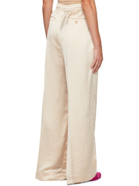 Crinkled polyester satin trousers. · Concealed drawstring at elasticized waistband · Four-pocket styling · Zip-fly · Central creases at front and back · White stitching at back Supplier color: Off white