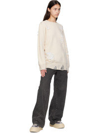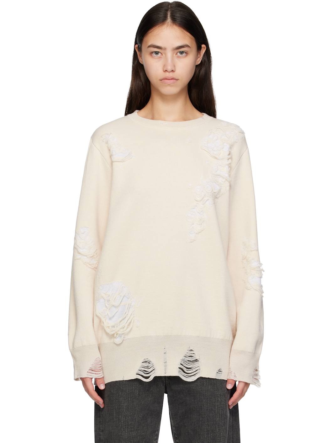 Double-faced knit virgin wool-blend sweater. · Distressing throughout · Rib-knit crewneck, hem, and cuffs · White stitching at back collar Supplier color: Off white/White 50% virgin wool, 50% acrylic. Made in Italy 252188F096006