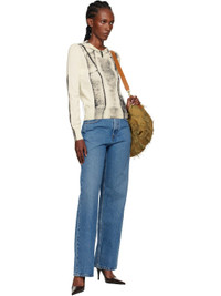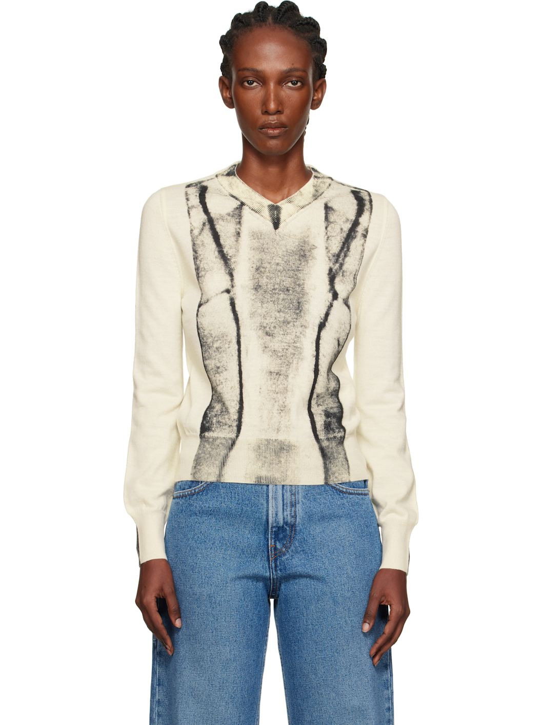 Knit virgin wool-blend sweater. · Rib-knit V-neck, hem, and cuffs · Spray-dyed detailing at front and sleeves · White stitching at back collar Supplier color: Off white 50% virgin wool, 50% acrylic. Made in Romania 252188F100000