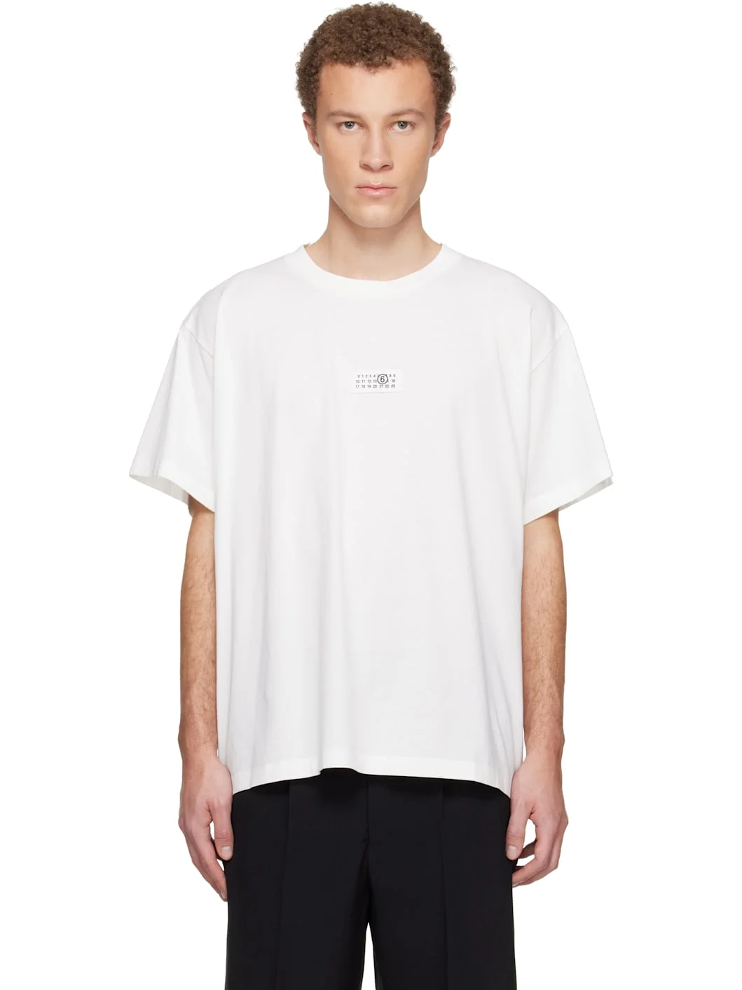 Cotton jersey T-shirt. · Rib-knit crewneck · Logo patch at chest · Dropped shoulders · White stitching at back collar Supplier color: Off-white 100% cotton. Made in Portugal 261188M213021