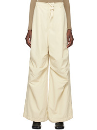 Polyester taffeta trousers. · Belt loops · Drawstring at waistband · Four-pocket styling · Zip-fly · Gathering at knees · White stitching at back waistband Supplier color: Off-white 100% polyester. Made in Italy 242188F087003