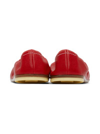 Grained calfskin ballerina flats in red. · Modified square toe · Elasticized collar · Signature white stitching at heel · Logo embossed at leather footbed · Partial suede lining · Rubber cylindrical block heel · Leather sole Supplier color: Chili pepper