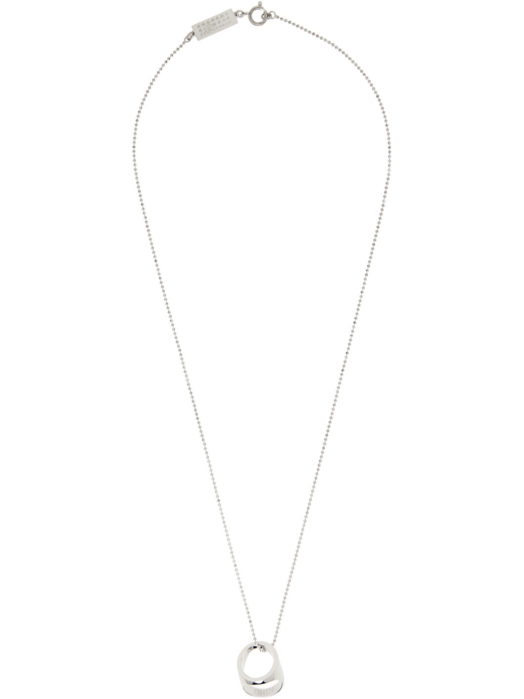 Ball chain necklace in antiqued silver-tone brass. · Signet ring pendant at drop · Logo plaque at spring-ring fastening · L24.5" Supplier color: Polished palladio Brass. Made in Italy 252188M145009