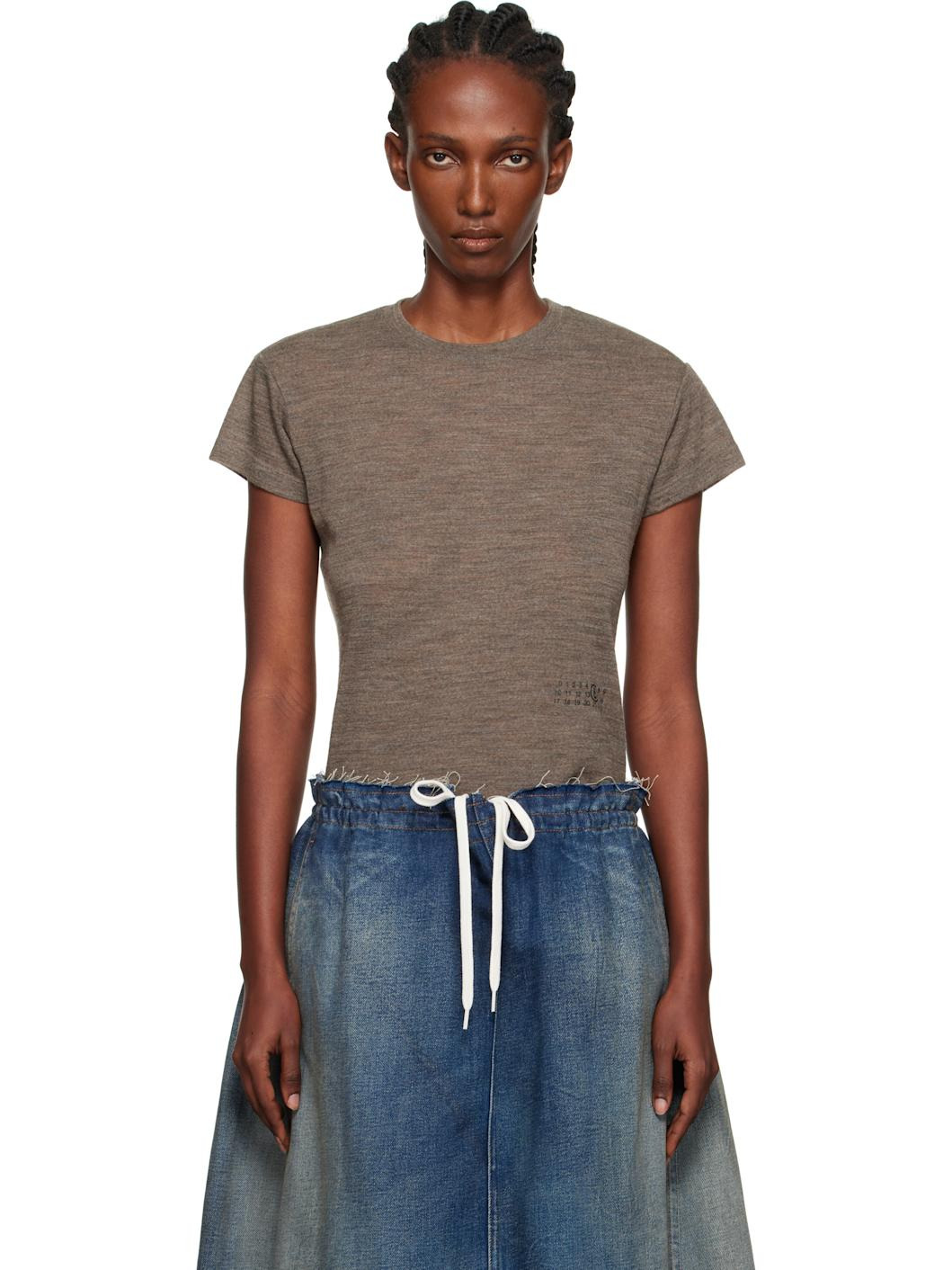 Taupe Sheer Wool Jersey T-shirt