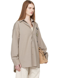 Stretch wool-blend broadcloth shirt. · Spread collar · Button closure · Logo patches and patch pocket at chest · Droptail hem · Dropped shoulders · Pleat at barrel cuffs · White stitching at back yoke Supplier color: Dune 54% polyester, 44% wool, 2% elastane. Made in Italy 261188F109017