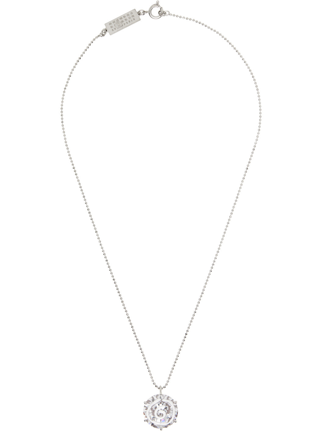 Ball chain necklace in antiqued silver-tone brass. · Prong-set stone with logo enamel at drop · Logo plaque at spring-ring fastening · L21" Supplier color: Palladio polished Brass, cubic zirconia. Made in Italy 252188M145012