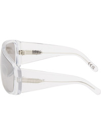 Shield-style transparent acetate-frame sunglasses. · Handcrafted · Mirrored gray lens · Integrated nose pads · Logo engraved at temples · Core wires · Includes pouch · Size: 69.06 135 Supplier color: White Acetate. Made in Italy 261188F005015