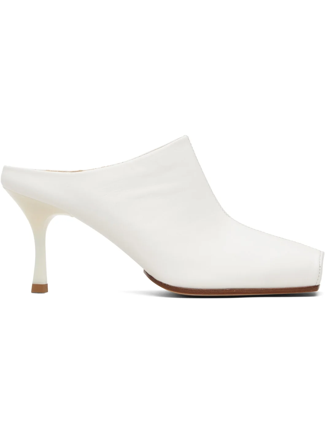 Buffed nappa sheepskin slip-on heels. · Square toe · Buffed calfskin lining · Stiletto heel with rubber injection · Calfskin nubuck sole · Heel: H2.75" Supplier color: Cream Upper: sheepskin. Sole: calfskin. Made in Italy 261188F122003