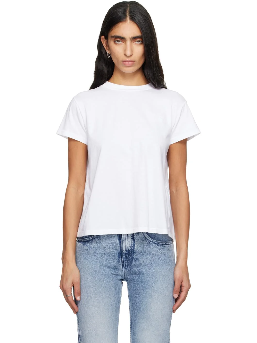 Cotton jersey T-shirt. · Rib-knit crewneck · Logo embroidered at chest · Padded satin panel with white stitching at back Supplier color: Optic white Body 1: 100% cotton. Body 2: 100% viscose. Fill: 100% polyester. Made in Italy 252188F110043