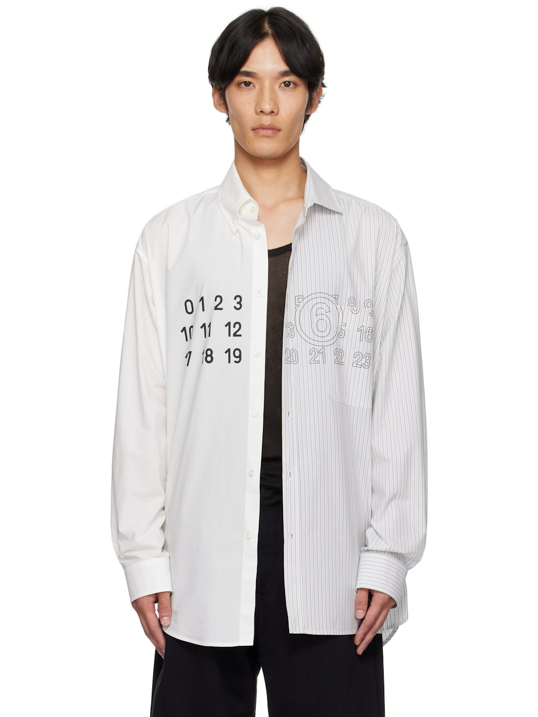 Cotton poplin and broadcloth shirt. · Paneled construction · Stripes throughout · Spread collar · Button closure · Logo printed at front · Shirttail hem · Dropped shoulders · Buttoned barrel cuffs · White stitching at back collar · Twin pleats at back yoke Supplier color: Stripes white/Grey 100% cotton. Made in Italy 252188M192005