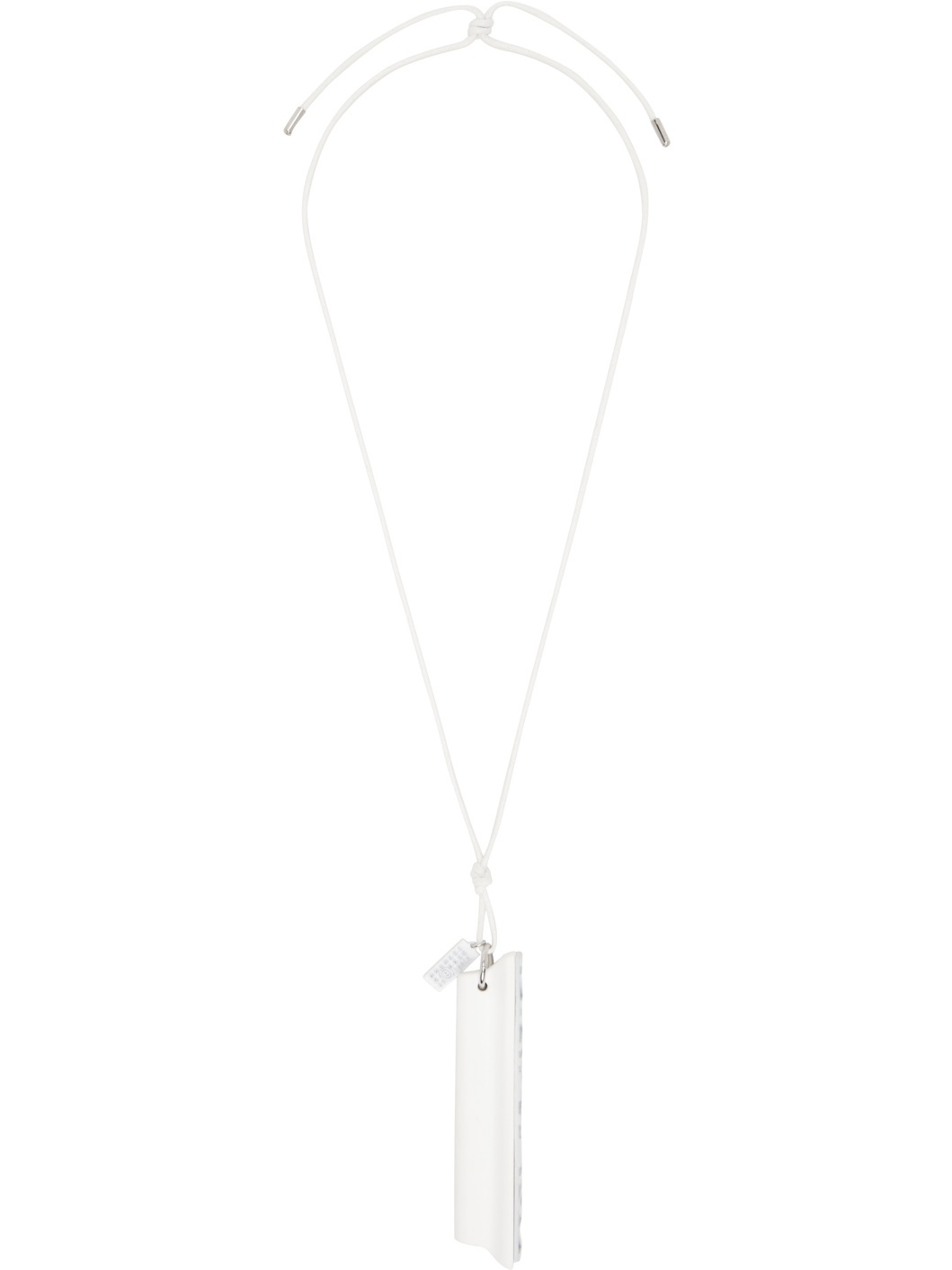 Cotton cord necklace in white. · Text-embossed graphic pendant and logo plaque at drop · Self-tie fastening · Silver-tone brass hardware · L32" Supplier color: Palladio polished Textile, brass. Made in Italy 251188M145014