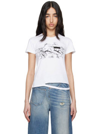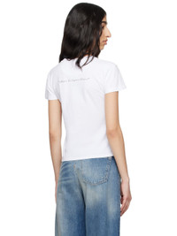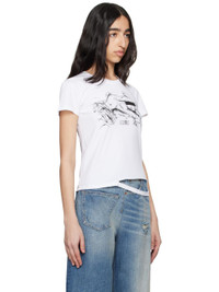 Cotton jersey T-shirt. · Rib-knit crewneck · Graphic and logo printed at chest · Cutout at front hem · White stitching at back collar · Text printed at back Supplier color: White 100% cotton. Made in Italy 251188F110055