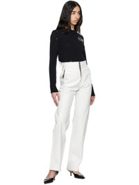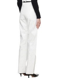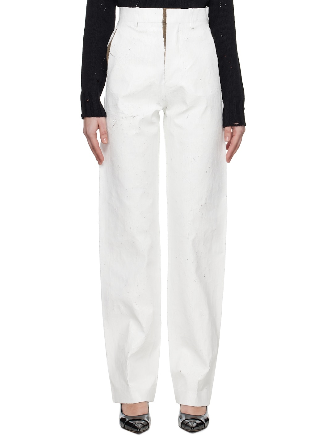 Hand-painted stretch polyester- and virgin wool-blend canvas trousers. Distressing throughout. · Belt loops · Three-pocket styling · Zip fly · Cutout and white stitching at back Supplier color: White Body: 54% polyester, 44% virgin wool, 2% elastane. Lining: 100% viscose. Made in Italy 251188F087028