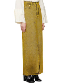 Non-stretch denim maxi skirt. Fading throughout. · Mid-rise · Belt loops · Raw edge at waist · Five-pocket styling · Button fly · Vent at front and back hem · White stitching at back Supplier color: Yellow Body: 100% cotton. Lining: 65% polyester, 35% cotton. Made in Italy 242188F093012