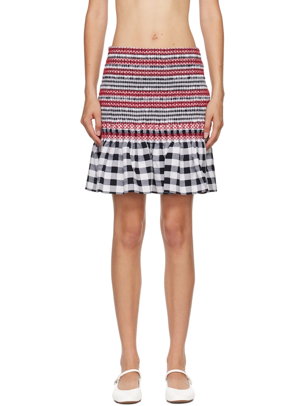 Slim-fit cotton-blend oxford cloth skirt. Shirring and jacquard gingham pattern throughout. · Peplum hem · Concealed zip closure at side seam · Contrast stitching in red Supplier color: Black 60% cotton, 40% polyester. Made in Italy 242943F090000