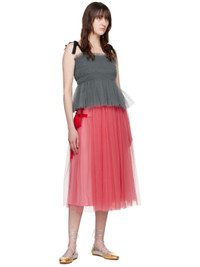 Nylon tulle tank top. Hand-stitched smocking throughout. · Ruffled trim at straight neck · Peplum hem · Concealed zip closure at side seam · Self-tie grosgrain shoulder straps · Full georgette lining Supplier color: Grey Body: 100% polyamide. Lining: 100% polyester. Made in United Kingdom 242943F111002