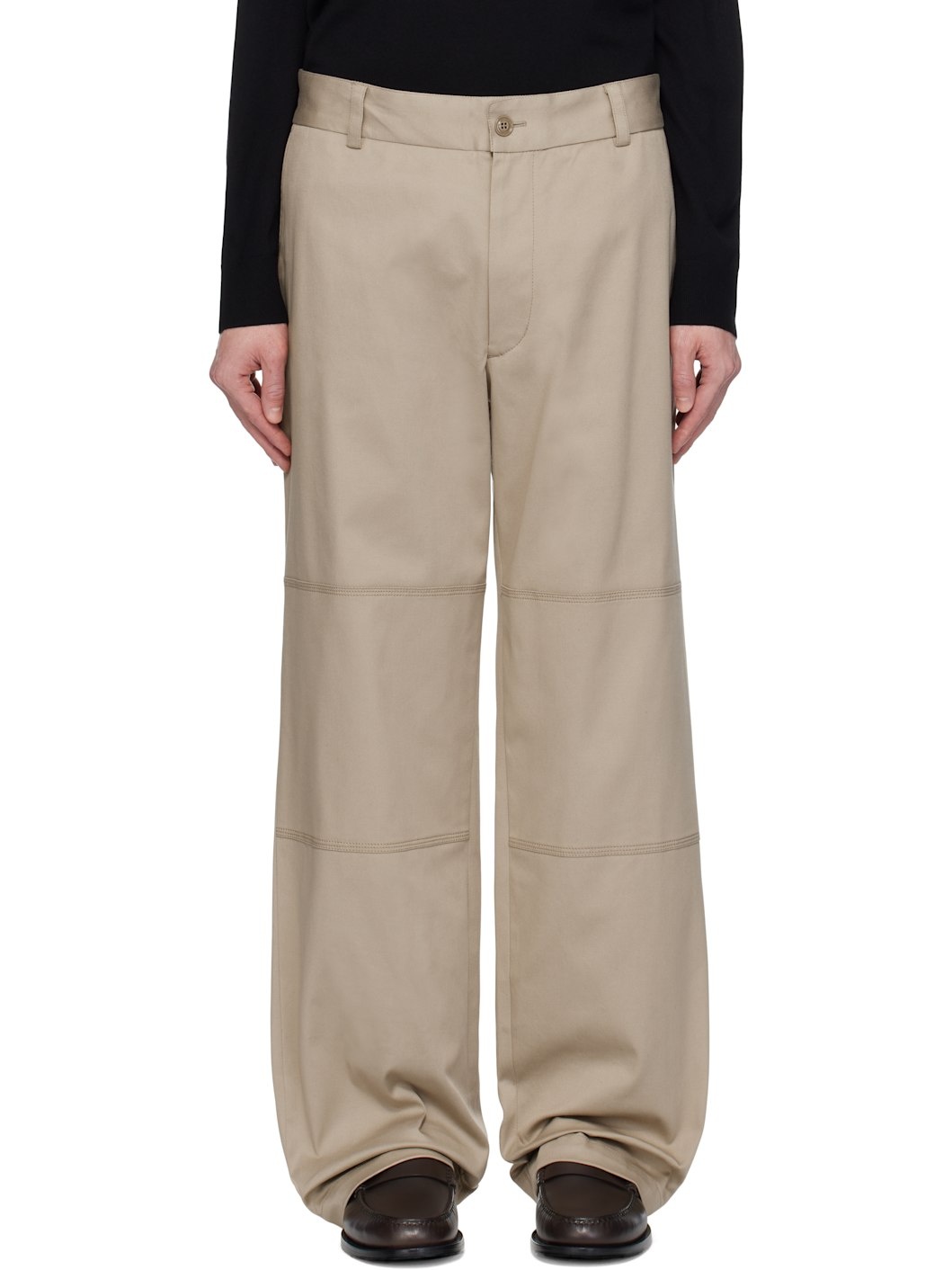 Stretch cotton gabardine trousers. · Belt loops · Four-pocket styling · Zip fly · Welt pocket at outseam · Felted logo patch at back Supplier color: Sand beige 98% cotton, 2% elastane. Made in Romania 251111M191023