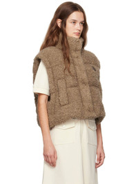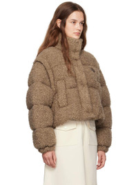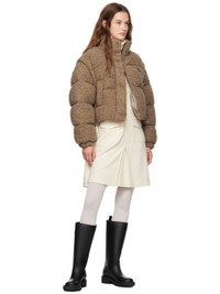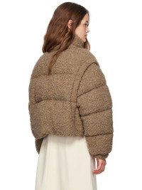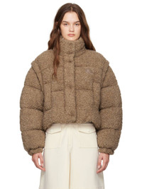 DIST-certified down-filled and quilted faux-shearling jacket. · Oversized · Funnel neck · Two-way zip closure with press-stud placket · Logo patch at chest · Zip pockets · Bungee-style drawstring at cropped hem · Detachable sleeves · Elasticized cuffs · Zip pocket at interior · Full quilted nylon longue saison lining Supplier color: Beige Fill: 90% down, 10% feather. Body: 55% acrylic, 17% mohair, 17% wool, 11% polyamide. Lining: 100% polyamide. Made in Hungary 242111F061100